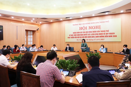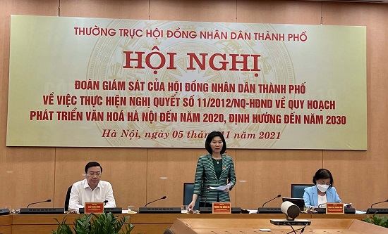 Phát biểu kết luận buổi làm việc, Phó Chủ tịch Thường trực HĐND thành phố Phùng Thị Hồng Hà đề nghị UBND thành phố khẩn trương rà soát, đánh giá tổng thể kết quả thực hiện Nghị quyết số 11/2012/NQ-HĐND, trên cơ sở các quy định của pháp luật đề xuất giải pháp thực hiện nội dung quy hoạch văn hóa cho giai đoạn 2021-2030 và định hướng cho những năm tiếp theo.
