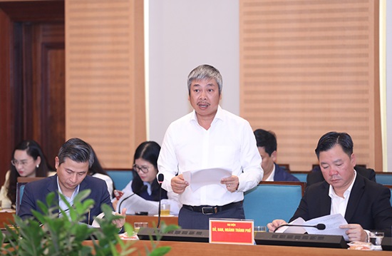 Phó Giám đốc Sở Kế hoạch và Đầu tư Thành phố Hà Nội Vũ Duy Tuấn báo cáo tại buổi làm việc