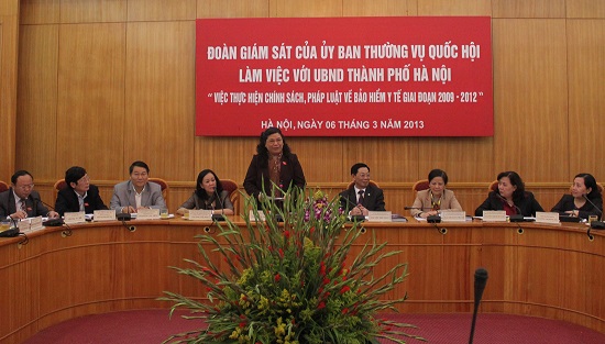 Chiều ngày 06/3/2013, Đoàn Giám sát của Ủy ban Thường vụ Quốc hội đã làm việc với UBND TP Hà Nội về "việc thực hiện chính sách, pháp luật về bảo hiểm y tế giai đoạn 2009-2012". Đồng chí Tòng Thị Phóng, Ủy viên Bộ Chính trị, Phó Chủ tịch Quốc hội cùng các đồng chí: Trương Thị Mai, UVTƯ Đảng, Chủ nhiệm Ủy ban về các vấn đề xã hội, Trưởng đoàn giám sát; các thành viên Đoàn giám sát của Ủy ban Thường vụ Quốc hội; Nguyễn Thế Thảo, UVTƯ Đảng, Phó Bí thư Thành ủy, Chủ tịch UBND TP; Ngô Thị Doãn Thanh, UVTƯ Đảng, Phó Bí thư Thành ủy, Chủ tịch HĐND TP; Nguyễn Thị Bích Ngọc, Phó Chủ tịch UBND TP; Nguyễn Thị Hồng Hà, Phó Trưởng Đoàn ĐBQH TP... dự buổi làm việc.
