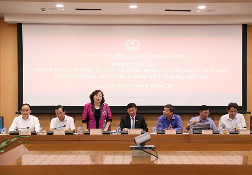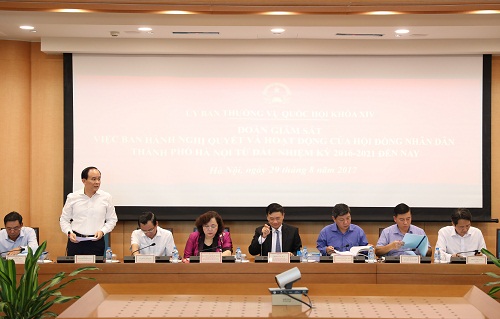 Đoàn giám sát của Ủy ban Thường vụ Quốc hội làm việc với HĐND thành phố Hà Nội