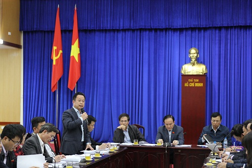 Đ/c Trần Thế Cương - Uỷ viên thường trực, Trưởng ban Văn hóa - Xã hội phát biểu