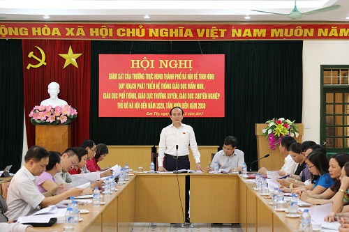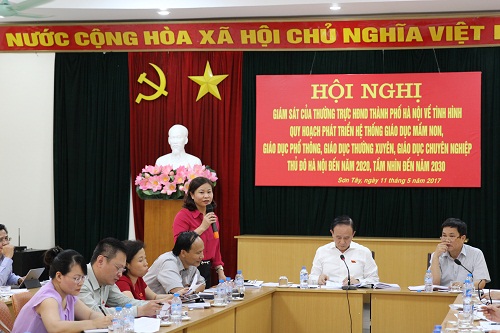 Chiều 11/5, Đoàn giám sát số 1 của Thường trực HĐND Thành phố Hà Nội do Ủy viên BTV Thành ủy, Phó Chủ tịch Thường trực HĐND Thành phố Nguyễn Ngọc Tuấn làm Trưởng đoàn đã giám sát về tình hình, kết quả thực hiện Nghị quyết số 05/2012/NQ-HĐND ngày 05/4/2012 của HĐND Thành phố về việc thông qua Quy hoạch phát triển hệ thống giáo dục mầm non, giáo dục phổ thông, giáo dục thường xuyên, giáo dục chuyên nghiệp Thu đô đến năm 2020, tâm nhìn đến năm 2030; Quy hoạch mạng lưới trường học thành phố Hà Nội đến năm 2020, tầm nhìn đến năm 2030 tại thị xã Sơn Tây.