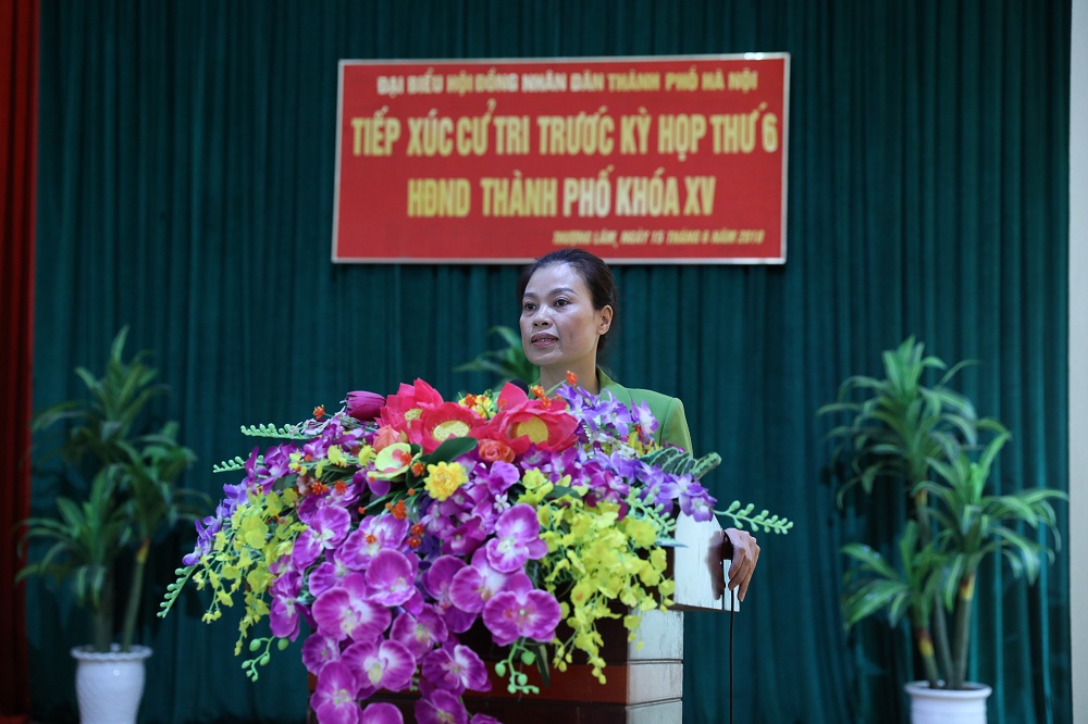 Cử tri Cao Văn Tạo - Giám đốc HTX Nông nghiệp Thượng Lâm kiến nghị với đại biểu HĐND Thành phố: Về chính sách của Thành phố đối với công tác Nông Nghiệp đề nghị Thành phố cần có chính sách và cơ chế đặc thù, ưu tiên cho các xã vùng bán sơn địa, để các xã khó khăn vươn kịp các xã vùng đồng bằng thuận lợi. Đề nghị Thành phố hỗ trợ tiền theo Nghị định 35 về việc quản lý, sử dụng diện tích đất trồng lúa cho nhân dân. HTX nông nghiệp chủ yếu sử dụng nước cho sản xuất là ở hồ 1, hiện nay hồ 1 đã bị bồi lắng không chứa được nước, địa phương phải lấy nước Sông Đáy qua kênh 7, do địa hình địa phương cao lấy nước để bơm vất vả. Đề nghị Thành phố cho nạo vét bùn đất hồ 1 để phục vụ nước sản xuất cho cả 2 xã Thượng Lâm và xã Tuy Lai. Đề nghị Thành phố có cơ chế đặc thù hỗ trợ phụ cấp cho cán bộ làm công tác nông nghiệp; hỗ trợ nhân dân các địa phương bị ảnh hưởng thiên tai đợt mưa lũ tháng 10/2017.