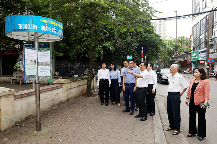 Trước khi làm việc với UBND quận, Đoàn đã đi khảo sát thực tế tại phường Ô chợ Dừa và phường Trung Tự.