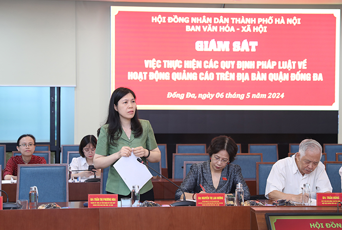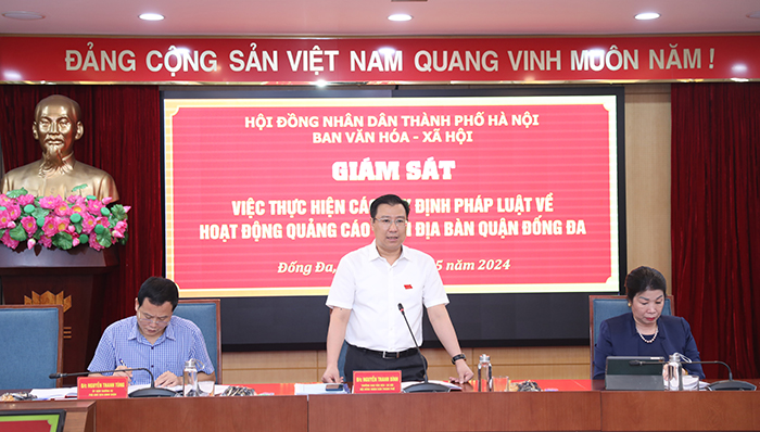 Sáng 6/5/2024, Ban Văn hóa - Xã hội HĐND Thành phố đã giám sát chuyên đề việc thực hiện các quy định pháp luật về hoạt động quảng cáo trên địa bàn quận Đống Đa. Cùng tham gia Đoàn giám sát có đại diện Sở Văn hóa Thể thao, Thông tin và Truyền thông, cùng các chuyên gia.