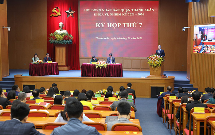 Báo cáo kết quả tình hình thực hiện các nhiệm vụ phát triển kinh tế-xã hội, an ninh quốc phòng năm 2022 do UBND quận trình tại kỳ họp cho thấy, với sự vào cuộc tích cực các cấp, các ngành, cả hệ thống chính trị, quận Thanh Xuân đã đạt được nhiều kết quả. Quận đã hoàn thành 23/23 chỉ tiêu Kinh tế xã hội, trong đó kinh tế tiếp tục tăng trưởng khá, đạt 7,3% so với năm 2021. Thu ngân sách đạt kết quả tốt, đến hết tháng 11/2022, quận đã thu vượt 10,4% dự toán và dự kiến cả năm 2022 sẽ đạt 113,39% so với kế hoạch đề ra. Giải ngân vốn đầu tư xây dựng cơ bản đạt cao, phấn đấu đến cuối năm vượt kế hoạch vốn thành phố giao. Công tác quy hoạch, chỉnh trang, phát triển đô thị, giải phóng mặt bằng, được quyết liệt, tập trung thực hiện. Các lĩnh vực văn hóa, xã hội đạt kết quả tích cực. ngành giáo dục và đào tạo quận Thanh Xuân nhiều năm liền dẫn đầu Thành phố. Công tác an sinh xã hội, chăm sóc sức khoẻ của nhân dân được quan tâm, chăm lo; công tác quốc phòng, quân sự địa phương, an ninh chính trị, trật tự an toàn xã hội được duy trì, đảm bảo. Hoạt động của HĐND quận đạt được nhiều kết quả, lan tỏa sự đổi mới trong hoạt động của HĐND Thành phố với phương châm ”Đổi mới, sâu sát, khoa học, hiệu quả”, đáp ứng được yêu cầu thực tiễn và nguyện vọng của cử tri, nhân dân.