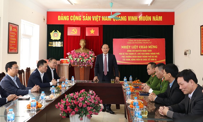 Nhân dịp Tết cổ truyền của dân tộc, chiều 12/01/2023, thay mặt lãnh đạo Thành phố, đồng chí Nguyễn Ngọc Tuấn, Phó Bí thư Thành ủy, Chủ tịch HĐND thành phố, Phó Trưởng đoàn ĐBQH Thành phố đã đến thăm, chúc Tết cán bộ, chiến sĩ Công an phường Trung Tự (quận Đống Đa) và một số gia đình chính sách quận Cầu Giấy.