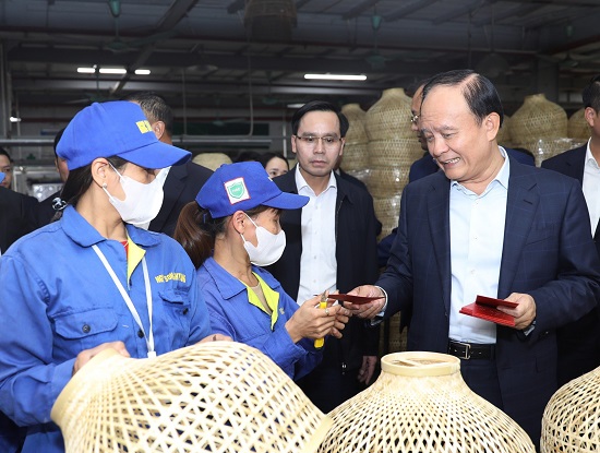 Lãnh đạo Thành phố thăm, động viên sản xuất tại Công ty TNHH Thủ công mỹ nghệ và nội thất Ngọc Sơn: