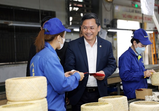 Tại Công ty TNHH Thủ công mỹ nghệ và nội thất Ngọc Sơn, lãnh đạo Công ty cho biết, đơn vị chuyên sản xuất mây tre đan xuất khẩu sang 40 nước với doanh thu năm 2023 đạt 680 tỷ đồng. Doanh nghiệp có hơn 500 cán bộ với đầy đủ tổ chức đảng, tổ chức công đoàn, đoàn thanh niên. Thu nhập bình quân của người lao động đạt 15 triệu đồng/người/tháng.