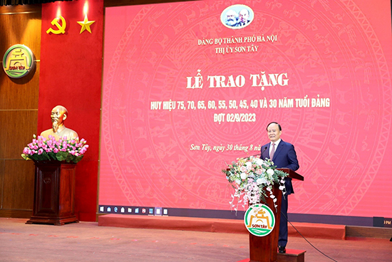 Thay mặt Ban Thường vụ Thành ủy Hà Nội, Phó Bí thư Thành ủy Nguyễn Ngọc Tuấn trân trọng bày tỏ lòng biết ơn sâu sắc đối với những đóng góp to lớn của các cán bộ, đảng viên lão thành. Các đảng viên đã nêu cao tinh thần cách mạng, ở cương vị công tác nào cũng đều hoàn thành xuất sắc nhiệm vụ mà Đảng và Tổ quốc giao phó. Hiện nay, mặc dù tuổi đã cao, song các đồng chí vẫn tích cực tham gia các hoạt động tại địa phương, gương mẫu đi đầu trong nhiều lĩnh vực; góp phần hoàn thành thắng lợi các nhiệm vụ chính trị, phát triển kinh tế, bảo đảm an sinh xã hội, giữ vững ổn định an ninh, trật tự của từng xã, phường và thị xã Sơn Tây.