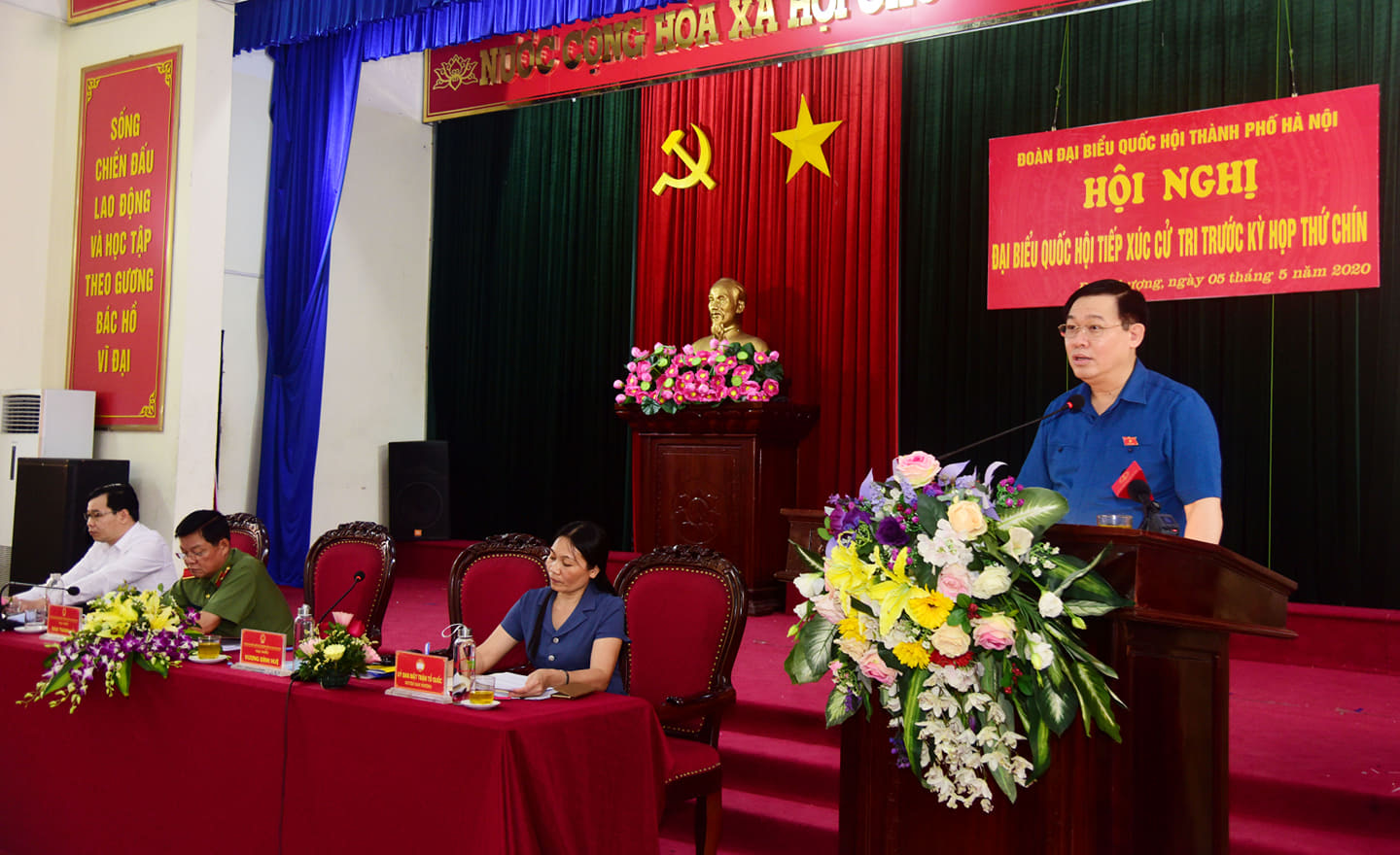 Chiều ngày 05/5/2020, Ủy viên Bộ Chính trị, Bí thư Thành ủy, Trưởng Đoàn ĐBQH TP Vương Đình Huệ cùng các vị ĐBQH TP trong đơn vị bầu cử số 5 đã TXCT trước kỳ họp thứ 9, Quốc hội Khóa XIV trên địa bàn huyện Đan Phượng