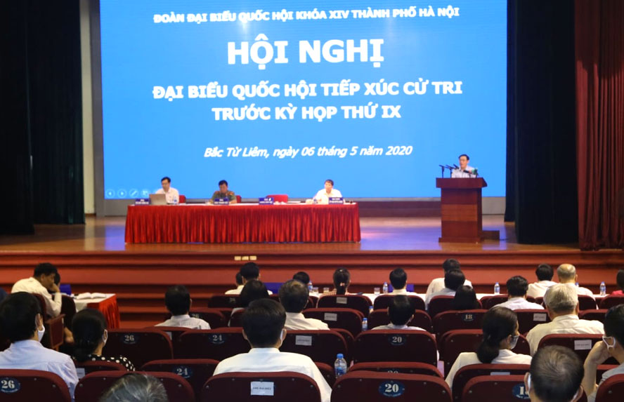Mở đầu hội nghị, đại biểu Quốc hội Đỗ Đức Hồng Hà, Ủy viên Thường trực Ủy ban Tư pháp của Quốc hội đã báo cáo với cử tri dự kiến nội dung kỳ họp thứ chín. Theo đó, kỳ họp sẽ chia thành 2 đợt. Đợt 1, Quốc hội sẽ họp trực tuyến qua cầu truyền hình từ Nhà Quốc hội đến 63 đoàn đại biểu Quốc hội các tỉnh, thành phố trực thuộc Trung ương (từ ngày 20-5 đến 4-6). Đợt 2, Quốc hội sẽ họp tập trung tại Nhà Quốc hội (từ ngày 10-6 đến 19-6).
