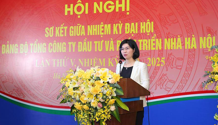 Phát biểu chỉ đạo tại hội nghị, đồng chí Phùng Thị Hồng Hà, Ủy viên Ban Thường vụ Thành uỷ, Phó Chủ tịch Thường trực HĐND Thành phố biểu dương những kết quả bước đầu đã đạt được của Đảng bộ, tập thể lãnh đạo và cán bộ, công nhân viên, người lao động Tổng Công ty Đầu tư phát triển nhà Hà Nội đã đạt được từ đầu nhiệm kỳ đến nay. Trong điều kiện khó khăn chung, nhất là diễn biến rất phức tạp của đại dịch Covid-19, Đảng bộ Tổng Công ty đã phát huy truyền thống đoàn kết, năng động, sáng tạo, tinh thần quyết tâm vượt khó, phấn đấu hoàn thành tốt các mục tiêu, nhiệm vụ Nghị quyết Đại hội lần thứ V Đảng bộ Tổng Công ty đề ra, thực hiện hiệu quả nhiệm vụ chính trị Thành phố giao và đạt được những kết quả tích cực trong cả hoạt động sản xuất kinh doanh cũng như công tác tổ chức xây dựng Đảng, hoạt động các tổ chức đoàn thể chính trị.