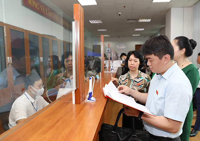 Đoàn giám sát thực tế tại bộ phận Một cửa Văn phòng Đăng ký đất đai Hà Nội