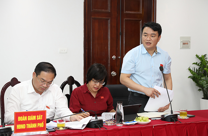 Trưởng Ban Pháp chế H ĐND Thành phố Duy Hoàng Dương trao đổi tại buổi giám sát
