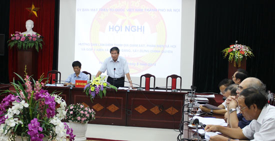 Chiều 29/9, Ban thường trực MTTQ TP Hà Nội đã triển khai hội nghị hướng dẫn làm điểm tham gia giám sát, phản biện xã hội và góp ý kiến xây dựng Đảng, chính quyền cho MTTQ và các đoàn thể, chính trị xã hội cho cán bộ chủ chốt MTTQ, đoàn thể chính trị trên địa bàn. Theo kế hoạch, có ba đơn vị được chọn thí điểm là MTTQ các huyện Đông Anh, Thạch Thất và MTTQ quận Hai Bà Trưng.