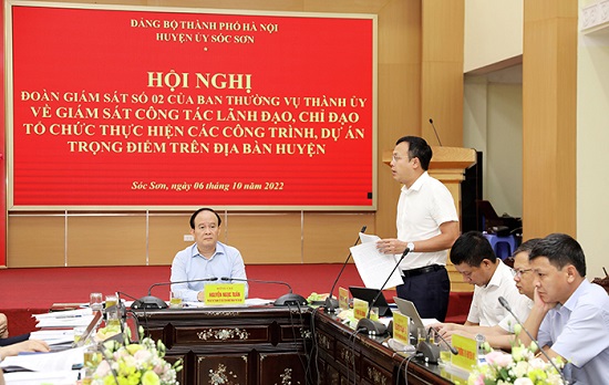 Sáng 6/10/2022, Đoàn giám sát số 2 của Ban Thường vụ Thành ủy Hà Nội đã giám sát việc lãnh đạo, chỉ đạo và tổ chức thực hiện các công trình, dự án trọng điểm trên địa bàn huyện Sóc Sơn.