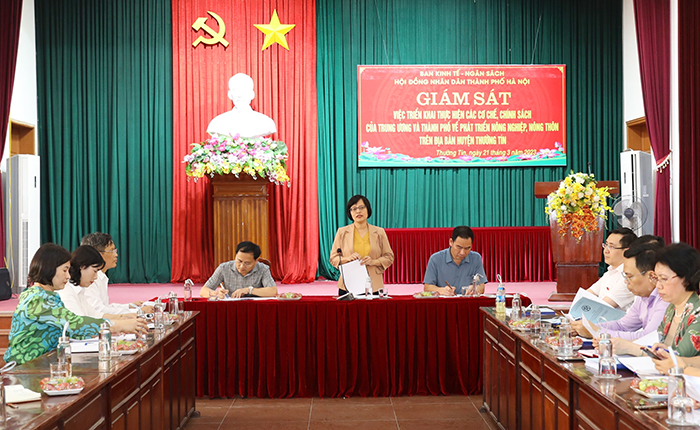 Đồng chí Hồ Vân Nga, Ủy viên Thường trực, Trưởng ban Kinh tế-Ngân sách HĐND Thành phố chủ trì buổi giám sát. Cùng dự có lãnh đạo các Ban HĐND Thành phố; đại diện lãnh đạo một số sở, ngành và huyện Thường Tín.