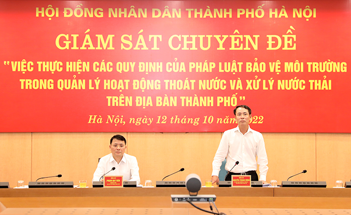 Chiều 12/10/2022, Đoàn giám sát của HĐND thành phố Hà Nội đã làm việc với UBND Thành phố cùng các cơ quan, đơn vị liên quan về việc thực hiện các quy định của pháp luật bảo vệ môi trường trong quản lý hoạt động thoát nước và xử lý nước thải trên địa bàn Thành phố.