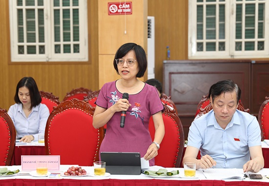 Phó Trưởng ban Văn hóa xã hội HĐND Thành phố Hoàng Thị Tú Anh trao đổi tại buổi làm việc