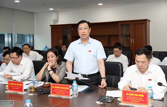 Trưởng ban Văn hóa xã hội HĐND Thành phố Nguyễn Thanh Bình trao đổi tại buổi làm việc