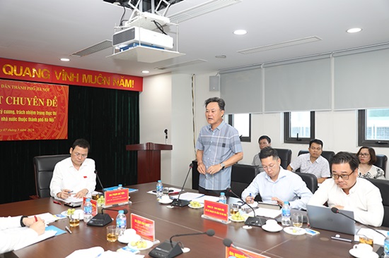 Phó Trưởng ban Kinh tế ngân sách HĐND Thành phố Vũ Ngọc Anh trao đổi tại buổi làm việc