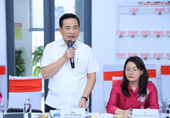Đại diện Trường THCS Lê Lợi và Trường THPT Lê Lợi báo cáo tại buổi làm việc