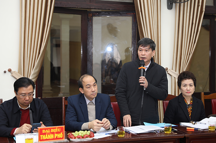 Trưởng ban Văn hóa - Xã hội HĐND Thành phố Nguyễn Thanh Bình trao đổi tại buổi làm việc
