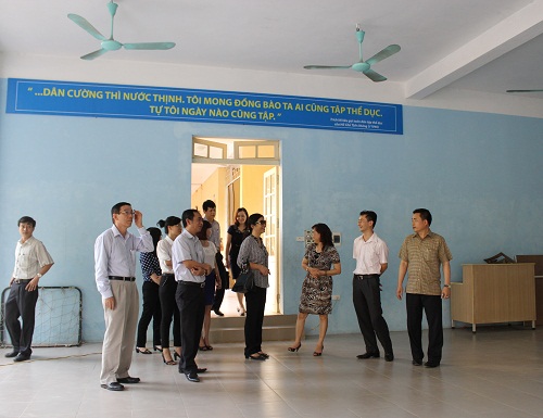Đoàn Khảo sát khu tập thể dục thể thao của Trường Tiểu học Ngô Quyền Sau khi nghe Hiệu trưởng nhà trường báo cáo trường đạt chuẩn quốc gia, đoàn đã đi khảo sát cơ sở vật chất, trang thiết bị dạy học nhà trường. Trường có cảnh quan sư phạm khang trang sạch đẹp, nhiều cây xanh vườn hoa tạo môi trường học tập thân thiện, có sân tập thể dục thể thao. Diện thích phòng học đúng quy cách, thoáng mát, có hệ thống chiếu sáng học đường. Phòng học tin học với 45 máy tính hoạt động tốt, có điều hòa. Phòng âm nhạc có máy chiếu, ti vi, 20 đàn, trống, thanh, phách, tranh ảnh. Phòng mỹ thuật có máy chiếu, giá vẽ, giá để mẫu vật… Khảo sát tại Trường Mầm non Bách Khoa, qua hơn 44 năm xây dựng và phát triển, Trường luôn đạt trường tiên tiến, tiên tiến xuất sắc và là một trong hai trường đầu tiên của thành phố Hà Nội được công nhận trường đạt chuẩn quốc gia mức độ 2 và tháng 02/2009. Đến thời điểm hiện tại Trường đang rà soát, đánh giá thực trạng các tiêu chuẩn để giữ vững danh hiệu Trường chuẩn quốc gia mức độ 2.