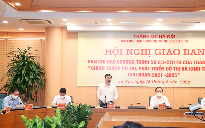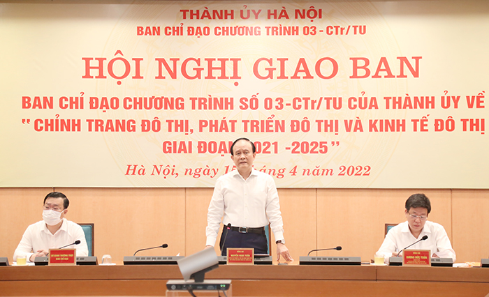 Sáng 15/4/2022, Chỉ đạo Chương trình số 03-CTr/TU của Thành ủy (khóa XVII) về “Chỉnh trang đô thị, phát triển đô thị và kinh tế đô thị giai đoạn 2021-2025” đã giao ban đánh giá kết quả thực hiện 3 tháng đầu năm 2022; triển khai các nhiệm vụ trọng tâm quý II và các tháng tiếp theo của Ban Chỉ đạo.