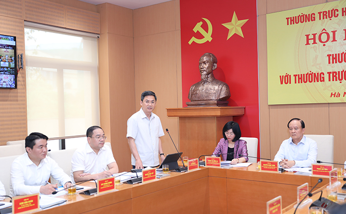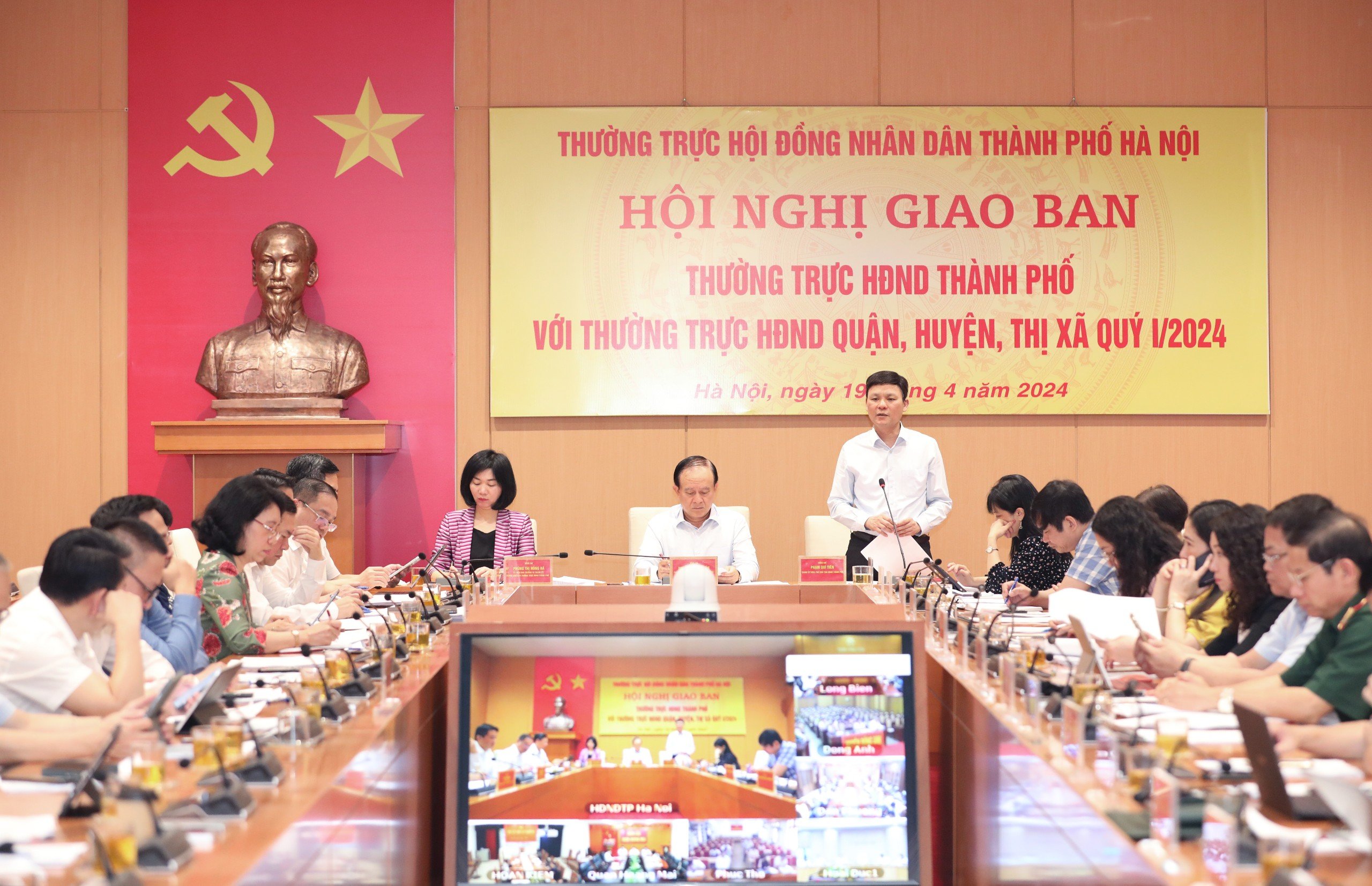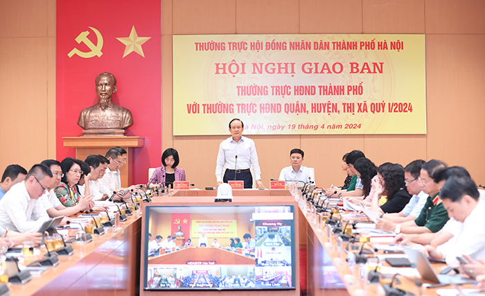 Sáng 19/4/2024, Thường trực HĐND thành phố Hà Nội tổ chức Hội nghị giao ban Thường trực HĐND Thành phố với Thường trực HĐND quận, huyện, thị xã quý I/2024.