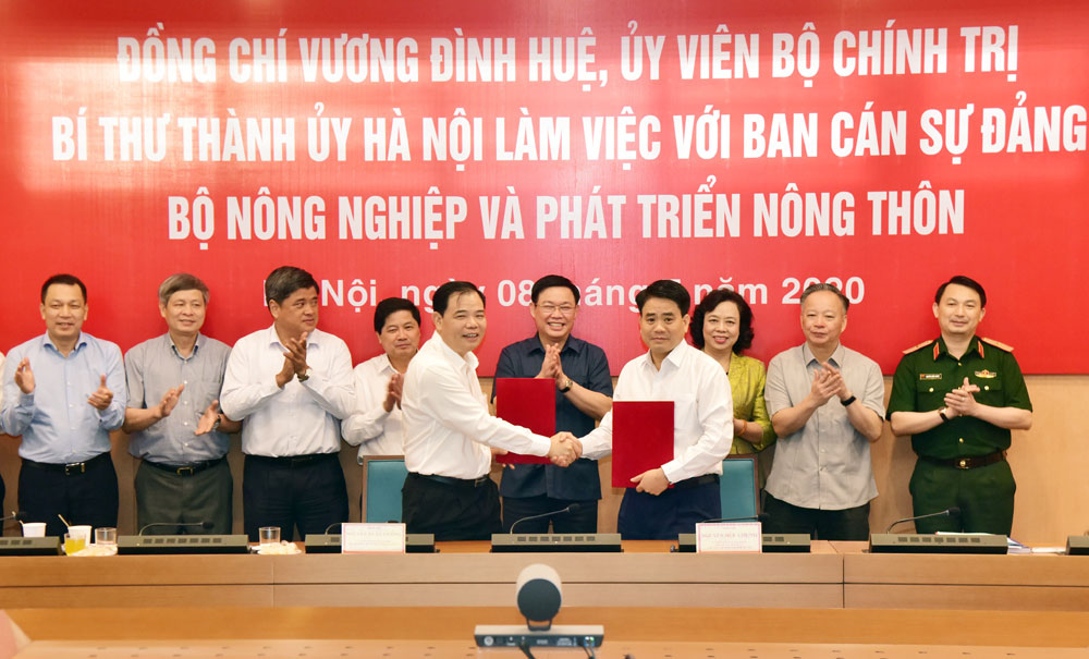 Trên cơ sở chỉ đạo và thống nhất giữa Bí thư Thành ủy Vương Đình Huệ và Bí thư Ban Cán sự đảng, Bộ trưởng Bộ Nông nghiệp và Phát triển nông thôn Nguyễn Xuân Cường, ngay tại buổi làm việc, đại diện hai cơ quan đã ký kết ban hành thông báo chung về cuộc làm việc. Bộ trưởng Nguyễn Xuân Cường và Chủ tịch UBND thành phố Nguyễn Đức Chung cũng đã ký biên bản ghi nhớ để triển khai cụ thể kết quả cuộc làm việc này trong thời gian tới.