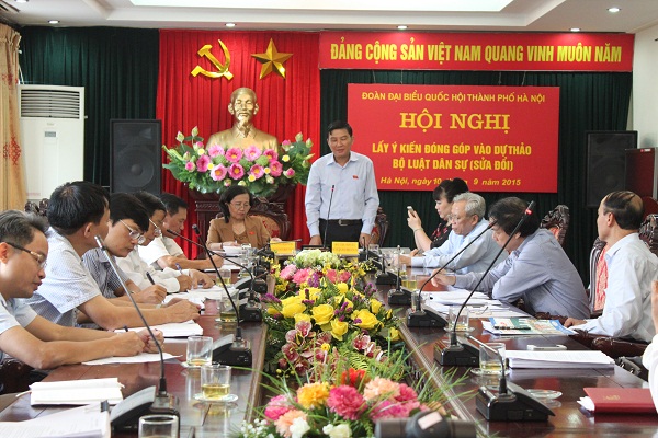 Ngày 10/9/2015, Đoàn ĐBQH thành phố Hà Nội tổ chức hội nghị lấy ý kiến góp ý vào dự thảo Bộ Luật Dân sự (sửa đổi). Tham dự hội nghị có một số ĐBQH trong Đoàn, các cơ quan, đơn vị, tổ chức có liên quan trên địa bàn Thành phố.