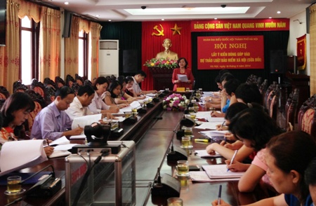 Sáng 18-9, Đoàn ĐBQH TP Hà Nội tổ chức hội nghị lấy ý kiến góp ý và dự thảo Luật Bảo hiểm xã hội (sửa đổi), Đồng chí Nguyễn Thị Hồng Hà, Phó Trưởng Đoàn ĐBQH thành phố chủ trì hội nghị. Dự thảo Luật Bảo hiểm xã hội (sửa đổi) gồm 9 Chương với 127 điều quy định về chế độ, chính sách bảo hiểm xã hội; quyền và trách nhiệm của người lao động, của cơ quan, tổ chức, cá nhân tham gia bảo hiểm xã hội, tổ chức đại diện tập thể lao động, tổ chức đại diện người sử dụng lao động; cơ quan bảo hiểm xã hội; quỹ bảo hiểm xã hội; thủ tục thực hiện bảo hiểm xã hội; quản lý Nhà nước về bảo hiểm xã hội.