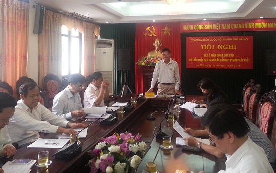 Sáng ngày 21/4/2015, Đoàn đại biểu Quốc hội Hà Nội đã tổ chức Hội nghị lấy ý kiến đóng góp vào Dự thảo Luật ban hành văn bản quy phạm pháp luật.Đồng chí Chu Sơn Hà, Phó Trưởng đoàn ĐBQH Thành phố chủ trì hội nghị. Dự thảo Luật ban hành văn bản quy phạm pháp luật gồm 16 chương 158 điều quy định về nguyên tắc, thẩm quyền, hình thức, trình tự, thủ tục xây dựng ban hành các văn bản quy phạm pháp luật; trách nhiệm của cơ quan Nhà nước, tổ chức, cá nhân trong việc xây dựng văn bản quy phạm pháp luật.