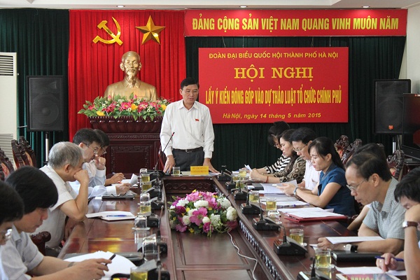 Sáng 14/5/2015, Đoàn Đại biểu Quốc hội thành phố Hà Nội tổ chức hội nghị lấy ý kiến góp ý vào dự thảo Luật Tổ chức Chính phủ. Tham dự hội nghị có các vị đại biểu Quốc hội trong Đoàn, các chuyên gia, đại diện một số cơ quan của Thành phố.