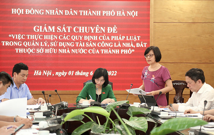 Với các sở ngành liên quan, Phó Chủ tịch Thường trực HĐND TP đề nghị Sở Tài chính chủ động sớm tham mưu xây dựng hoàn thiện Đề án về cơ sở dữ liệu quản lý tài sản công trên địa bàn Thành phố; hướng dẫn quản lý tài sản là thiết chế văn hóa trình UBND Thành phố. Đồng thời, Sở Tài chính rà soát về phân cấp để tham mưu quản lý và sử dụng hiệu quả tài sản công, tránh xảy ra sai phạm không đáng có. Sở TN&MT xem xét đề xuất của quận Thanh Xuân về một số khu đất xen kẹt trên địa bàn để xây dựng thiết chế văn hóa. Sở Xây dựng rà soát, quản lý diện tích sử dụng chung tại các khu tái định cư, có biện pháp kiên quyết, dứt điểm xử lý vi phạm tồn tại.