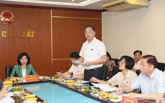Giải trình ý kiến của thành viên đoàn giám sát, đại diện UBND quận Cầu Giấy đã thông tin, làm rõ các nội dung như công tác luân chuyển cán bộ, thi tuyển chức danh, triển khai mô hình chính quyền đô thị, chế độ chính sách của cán bộ không chuyên trách cấp cơ sở; việc kiểm tra xử lý vi phạm; công tác quản lý lĩnh vực đô thị và quản lý chung cư trên địa bàn; trật tự văn minh đô thị, đảm bảo môi trường xanh sạch đẹp,…