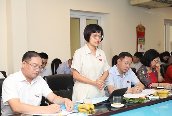 Trưởng ban Kinh tế-Ngân sách HĐND Thành phố Hồ Vân Nga đề nghị quận thông tin về công tác lãnh đạo, chỉ đạo thu ngân sách, kế hoạch, mục tiêu đặt ra được thực hiện như thế nào; việc kiểm tra đôn đốc, giám sát đối với các dự án chậm triển khai trên địa bàn,…