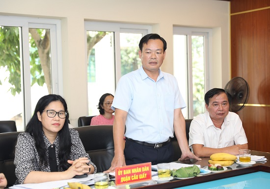 Chủ tịch UBND quận Cầu Giấy Bùi Tuấn Anh trao đổi tại buổi giám sát