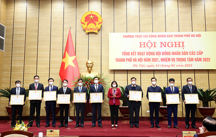 Nhân dịp này, 30 tập thể có thành tích trong công tác hoạt động của HĐND thành phố năm 2021 đã được Chủ tịch UBND thành phố khen thưởng, trong đó 10 tập thể được tặng Cờ "Đơn vị xuất sắc phong trào thi đua" và 20 tập thể được tặng Bằng khen.
