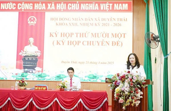 * Ngày 23/4/2025, HĐND xã Duyên Thái tổ chức Kỳ họp thứ 11 (Kỳ họp chuyên đề). Kỳ họp đã thông qua Tờ trình về tán thành với phương án thực hiện sắp xếp đơn vị hành chính cấp xã của huyện Thường Tín. Căn cứ kết quả lấy ý kiến cử tri đại diện hộ gia đình trên địa bàn xã, về Phương án sắp xếp xã mới: tỷ lệ 99,47% đồng ý. Về tên gọi của đơn vị hành chính mới: tỷ lệ 99,18% đồng ý.
