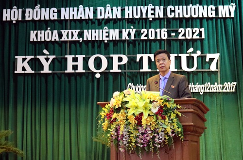 Trong 2 ngày 18 và 19/12, HĐND huyện Chương Mỹ khóa XIX nhiệm kỳ 2016 - 2021 đã tổ chức kỳ họp thứ 7 nhằm đánh giá kết quả thực hiện nhiệm vụ phát triển kinh tế - xã hội, an ninh - quốc phòng năm 2017 và đề ra phương hướng, nhiệm vụ năm 2018.