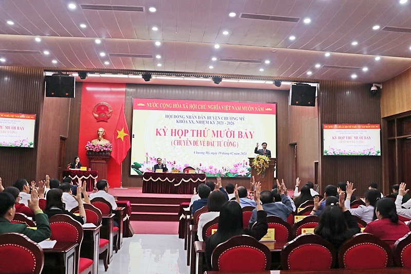 Tại kỳ họp, HĐND huyện Chương Mỹ thông qua nghị quyết về điều chỉnh chủ trương đầu tư các dự án đầu tư công thực hiện giai đoạn 2021 - 2025 gồm 06 dự án thuộc lĩnh vực trụ sở cơ quan. Theo đó, điều chỉnh quy mô, tổng mức đầu tư, nguồn vốn, thời gian thực hiện 06 dự án, (trong đó có 5 dự án điều chỉnh thời gian thực hiện): có tổng mức đầu tư được duyệt 49.147,47 triệu đồng, tổng mức đầu tư đề nghị điều chỉnh là 68.244,05 triệu đồng. Bao gồm 6 dự án, đó là: Xây dựng trụ sở làm việc Ban chỉ huy quân sự xã Thượng Vực; Hữu Văn; Trần Phú; Đồng Lạc; Ngọc Hòa và xã Tốt Động.