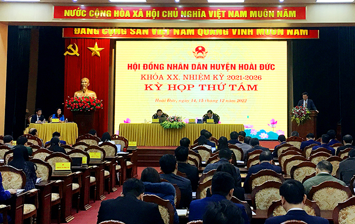 Diễn ra trong 02 ngày (14-15/12), tại kỳ họp này, HĐND huyện Hoài Đức xem xét, đánh giá tình hình thực hiện nhiệm vụ phát triển kinh tế - xã hội, an ninh quốc phòng năm 2022, phương hướng, nhiệm vụ năm 2023; Báo cáo tóm tắt tình hình thực hiện kế hoạch đầu tư công năm 2022, kế hoạch đầu tư công năm 2023 của huyện; Báo cáo tóm tắt điều chỉnh tổng quyết toán thu, chi ngân sách huyện năm 2021; Báo cáo tóm tắt tình hình thực hiện dự toán thu, chi ngân sách năm 2022, dự toán thu, chi ngân sách và phương án phân bổ dự toán thu, chi ngân sách năm 2023 của huyện.