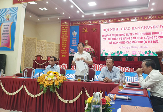 Ngày 09/5/2023, Thường trực HĐND huyện Mỹ Đức tổ chức Hội nghị giao ban chuyên đề với Thường trực HĐND các xã, thị trấn về “Nâng cao chất lượng tổ chức Kỳ họp HĐND các cấp huyện Mỹ Đức”.