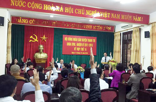 Sáng 14-10, HĐND huyện Thanh Trì đã tổ chức kỳ họp thứ 14 (kỳ họp không thường kỳ) khóa XVIII nhiệm kỳ 2011-2016, nhằm kiện toàn chức danh Phó Chủ tịch UBND huyện và phê duyệt chủ trương đầu tư các dự án thuộc thẩm quyền HĐND cấp huyện.