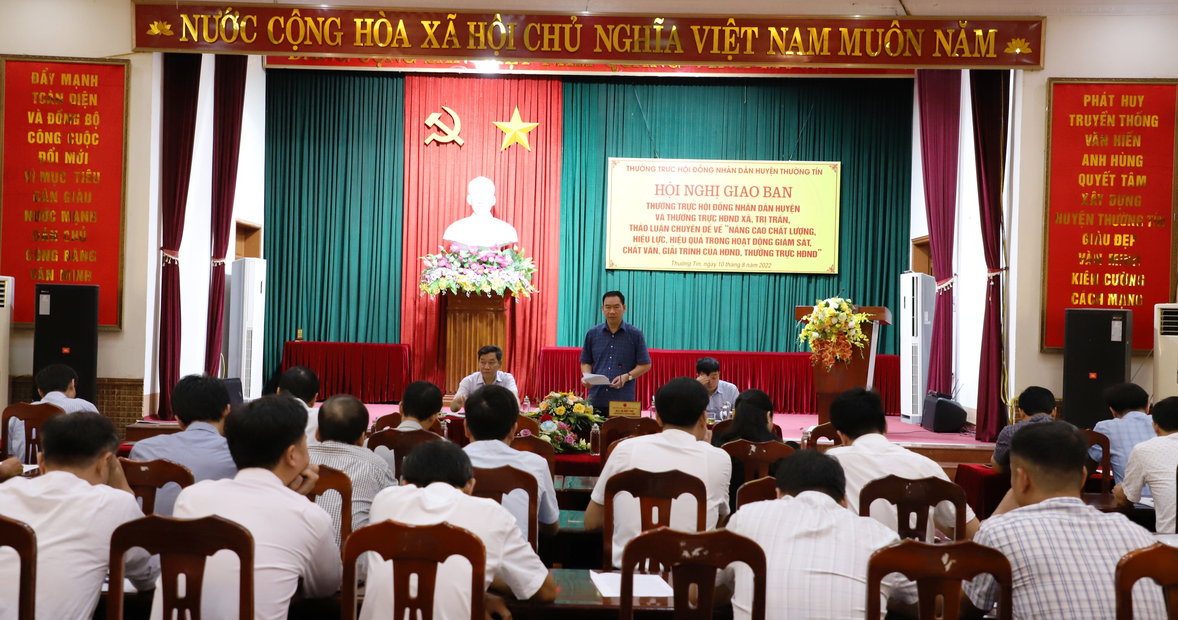 Tại hội nghị, Thường trực HĐND huyện đã báo cáo tóm tắt kết quả hoạt động HĐND các cấp 7 tháng đầu năm, nhiệm vụ trọng tâm 5 tháng cuối năm; rút kinh nghiệm kỳ họp thường lệ giữa năm HĐND huyện, các xã, thị trấn; thông qua nội dung Kế hoạch thực hiện Đề án số 15-ĐA/TU ngày 12/5/2022 của Ban Thường vụ Thành ủy Hà Nội và Kế hoạch số 105-KH/HU ngày 29/6/2022 của Huyện ủy Thường Tín về “Nâng cao chất lượng, hiệu lực, hiệu quả hoạt động giám sát, chất vấn, giải trình của HĐND, Thường trực HĐND các cấp thành phố Hà Nội”.