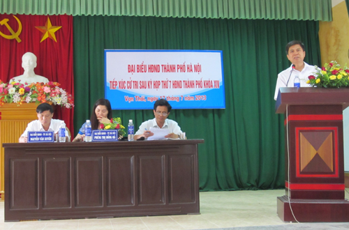 Tại buổi tiếp xúc, cử tri rất phấn khởi trước kết quả của kỳ họp vừa qua đã giải quyết những vấn đề bức xúc của người dân, việc lấy phiếu tín nhiệm các chức danh chủ chốt của HĐND TP đã được thực hiện công khai, dân chủ... Bên cạnh đó, cử tri đã tập trung kiến nghị các vấn đề: tình trạng học thêm, dạy thêm tràn lan, tình trạng ách tắc giao thông tại tuyến đường Đội Nhân, phường Vĩnh Phúc; một số gia đình ở phường Kim Mã vẫn chưa có số nhà; nên thống nhất tên gọi "cụm" hay "khu dân cư"; HĐND TP cần có giám sát trong việc thực hiện các chế độ chính sách; một số kiến nghị liên quan đến việc xây trường học, nhà văn hóa…