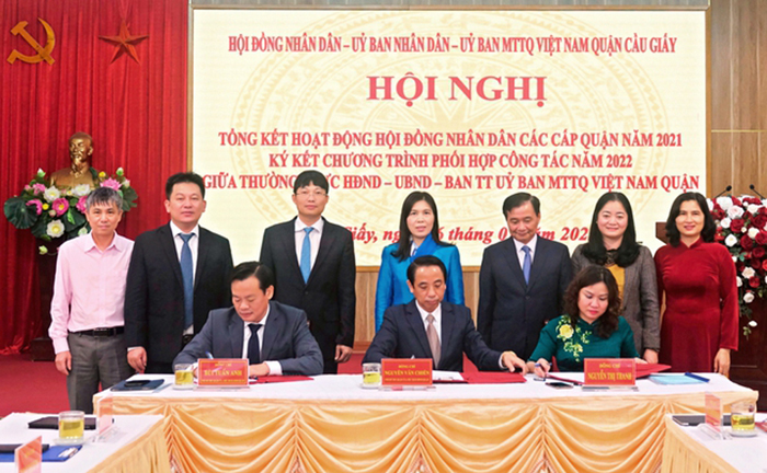 Thường trực HĐND - UBND - Ban Thường trực MTTQ Việt Nam quận Cầu Giấy ký kết chương trình phối hợp công tác năm 2022
